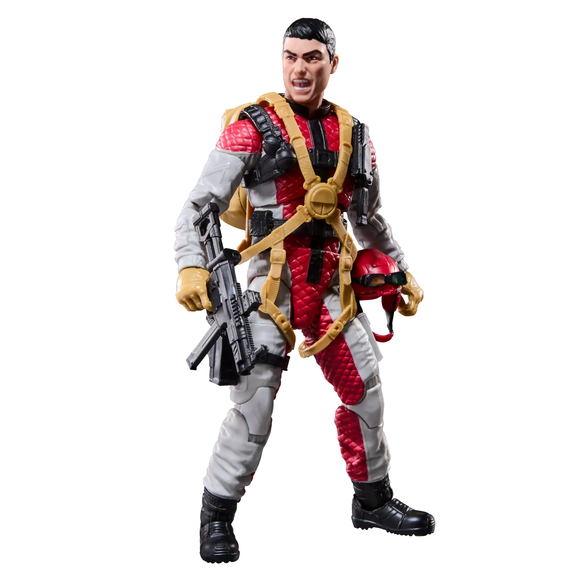 This David “Crazylegs” Thomas figure contains 8 character-inspired accessory pieces including backpack, helmet, goggles, knife, figure stand, and weapon accessories.